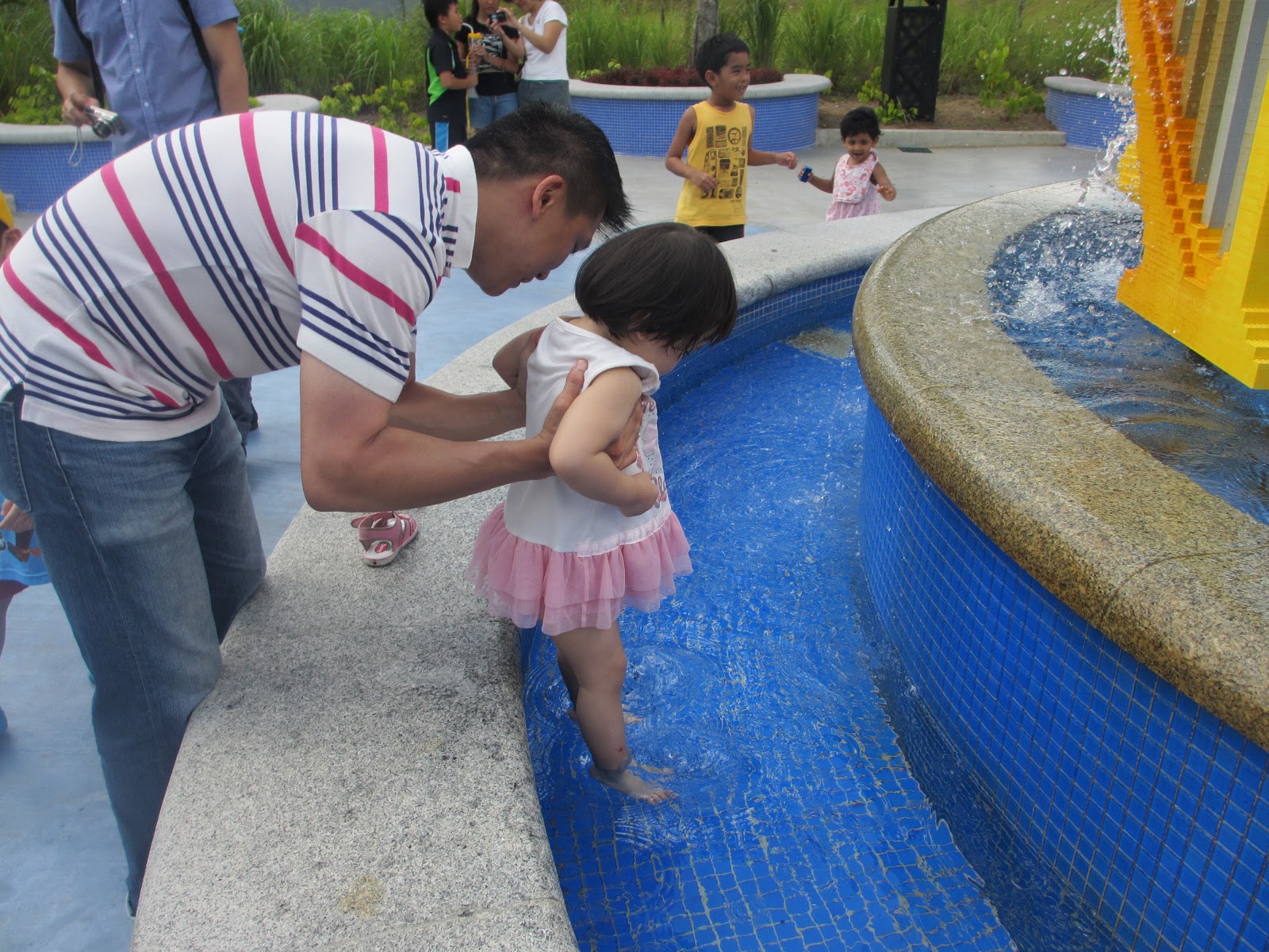 We saw a really nice water fountain and Daddy carried Le Xin and placed her little feet into the water....The water so cold she said!