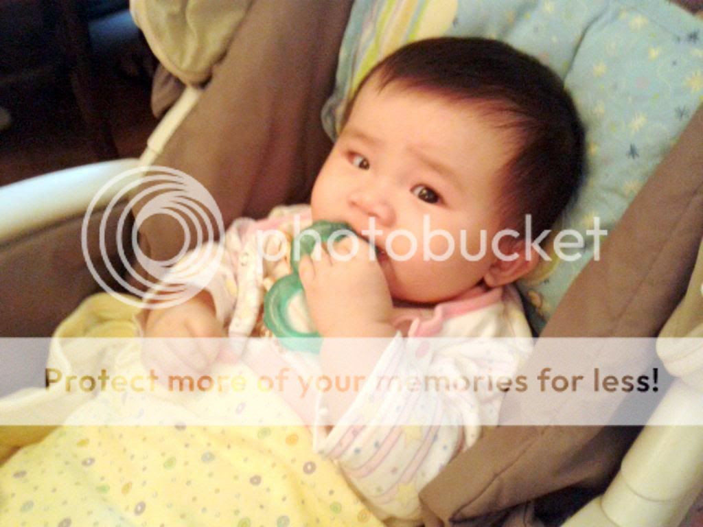 Then I gave a rubber ring which was like the shape of the number 8. She appeared to enjoy biting and sucking it. Soooooo cute!